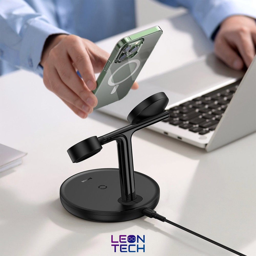 شما می‌توانید گوشی خود را در حالت افقی یا عمودی قرار دهید و از نمایشگر آن برای تماشای فیلم، بازی یا کارهای دیگر استفاده کنید. شارژر بی سیم بیسوس مدل Baseus Wireless Charger Holder Swan همچنین دارای دو پایه شارژ بی‌سیم برای ساعت هوشمند و هندزفری بی‌سیم شما است که با توان 10 وات، این دو دستگاه را به صورت همزمان شارژ می‌کند. شما می‌توانید از این شارژر برای دستگاه‌های اپلی که از قابلیت شارژ وایرلس پشتیبانی می‌کنند، از جمله آیفون 12 به بعد، اپل واچ و ایرپادز، استفاده کنید.
