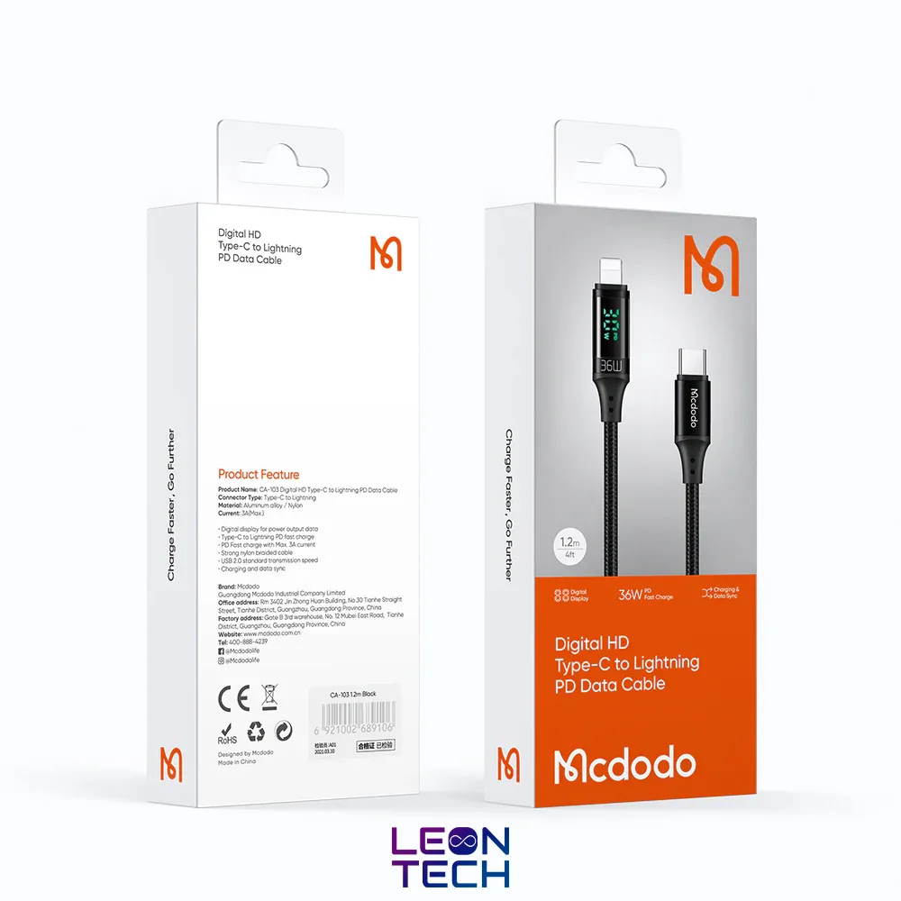 با کابل تایپ سی به لایتنینگ مک دودو CA-1932، دستگاههای خود را با حداکثر توان 36 وات و شدت جریان 3 آمپر شارژ کنید. این کابل با قابلیت PD (Power Delivery)، شارژی سریع و مطمئن را تضمین میکند، به طوری که تنها در 30 دقیقه تا 50% باتری دستگاه شما را شارژ میکند. این کابل دارای استاندارد های جهانی برای شارژ سریع می باشد. این به این معناست که خیالتان از بابت کیفیت کابل راحت باشد و مطمعن باشید این کابل به باطری گوشی شما صدمه ای نمی زند.